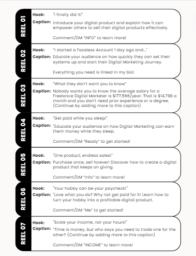 A comprehensive e-book that walks you through the step-by-step process of creating and growing a successful Instagram account without revealing your face.